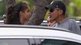 The Latest: Obama Plays Golf With Longtime Friends in Hawaii President Barack Obama, right, talks with his daughter Malia on a visit to Island Snow during a family vacation on Sunday, Dec. 27, 2015, in Kailua, ...